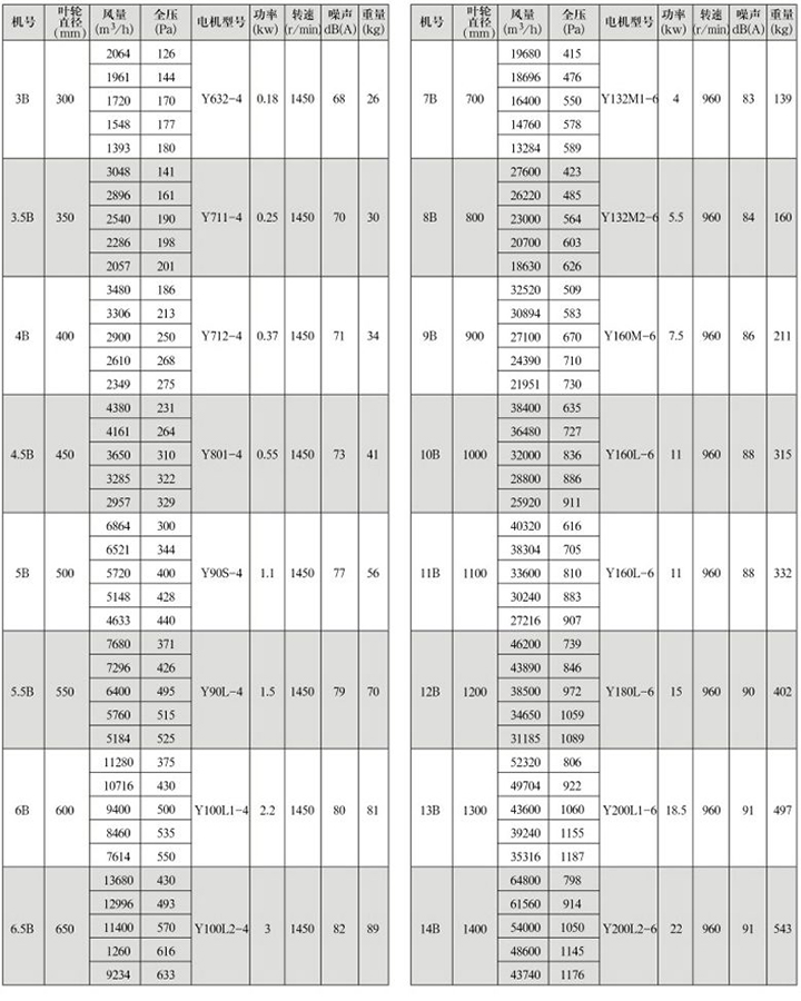 風機主要有葉輪、機殼、進口集流器、導流片、電動機等部件組成。葉輪采用有子午加速特點的扭曲平板片焊接在輪轂上。經動平衡校驗,超速試驗,具有良好的空氣動力性能。機殼采用圓筒形,與消音功能的集風器聯接成整體。出口裝有導流片,具有良好的氣流分布,壓力穩定。