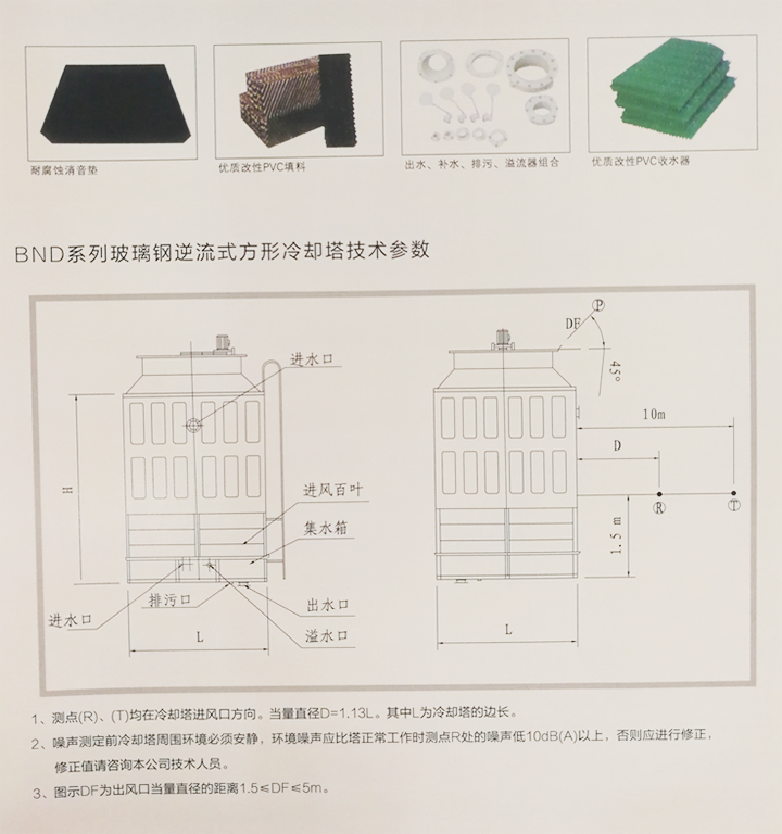 節(jié)能型玻璃鋼冷卻塔產(chǎn)品概述 節(jié)能型玻璃鋼冷卻塔的設(shè)計中采用的“方形逆流式冷卻塔用斜梯開波填料片”,其熱力、 阻力特性均于其 他填料。