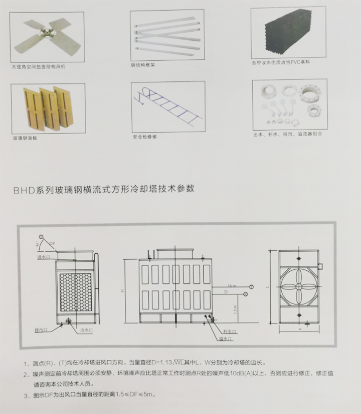 節能型玻璃鋼冷卻塔產品概述 節能型玻璃鋼冷卻塔的設計中采用的“方形逆流式冷卻塔用斜梯開波填料片”,其熱力、 阻力特性均于其 他填料。