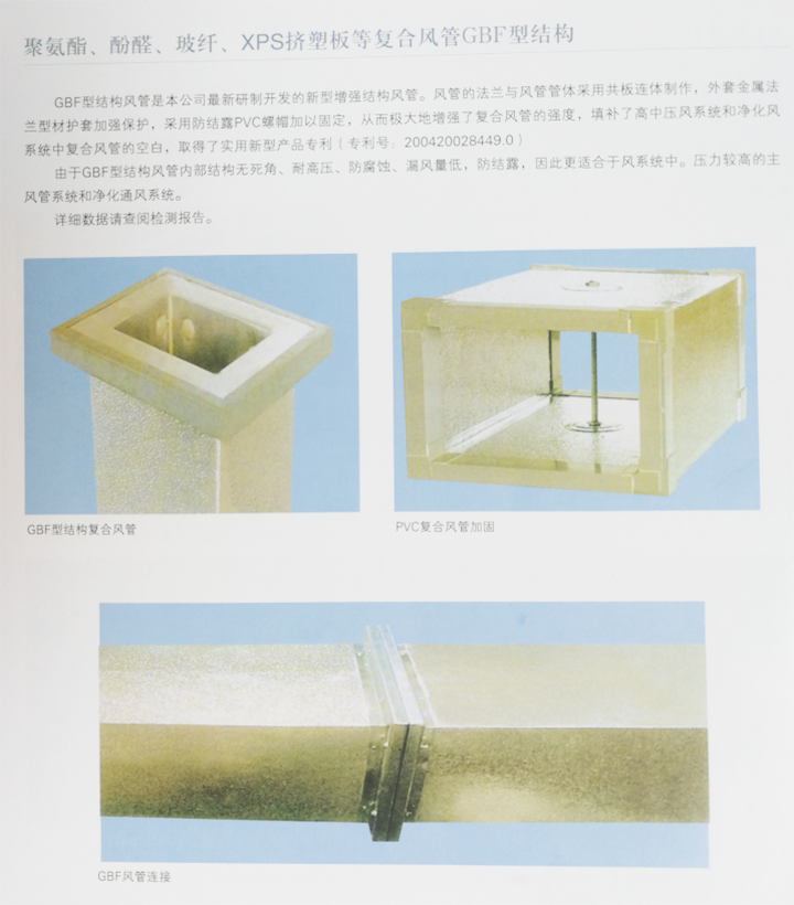 復(fù)合風(fēng)管是將保溫板材表面粘貼高純度軋花鋁箔,按照工程需要制成集風(fēng)道與保溫材料為一體的新型風(fēng)管。保溫材料選用三種材料,一種是厚度為25mm的離心玻纖板,一種是厚度為20mm的硬質(zhì)聚氨酯板;一種是厚度為20mm的硬質(zhì)酚醛板。 本公司通過對國內(nèi)外生產(chǎn)廠家的調(diào)研,取長補(bǔ)短,自行研制了復(fù)合風(fēng)管機(jī)械化生產(chǎn)線,并專為復(fù)合風(fēng)管設(shè)計(jì)了兩種連接機(jī)構(gòu),加強(qiáng)其密閉性能。是通風(fēng)管道系統(tǒng)最為理想的更新?lián)Q代產(chǎn)品。 復(fù)合風(fēng)管主要特點(diǎn): 1、強(qiáng)度大:抗壓抗變形,結(jié)構(gòu)穩(wěn)定,長期使用不變形、不扭曲、不分解,具有優(yōu)良的壓縮強(qiáng)度和拉伸強(qiáng)度。 2、導(dǎo)熱系數(shù)小:經(jīng)建筑科學(xué)研究所測定,其導(dǎo)熱系數(shù)為0.22-0.03w/m.k,優(yōu)于其他常用保溫材料。 3、防火性能好:達(dá)到并超過國家GB8624-1997標(biāo)準(zhǔn),玻纖板為難燃A級,聚氨酯板為難燃B級,酚醛為難燃B級。 4、制造設(shè)施簡單:生產(chǎn)風(fēng)管只需幾件常規(guī)的小型工具和工作平臺,無需剪刀車、折邊機(jī)等專用工具。 5、重量輕、安裝便捷:保溫板材平均容量為50-80kg/m3,風(fēng)管連接采用GBF型連接,插條式連接及T型加固型連接,施工安裝快捷方便,一般安裝速度為50m3/日/人。 6、使用壽命長:由于風(fēng)管內(nèi)外層為高純度軋花鋁箔,表面與空氣接觸,將形成具有穩(wěn)定的AL2O3保護(hù)層,保溫板材為高分子材料,使用壽命是鍍鋅風(fēng)管的4-6倍,一般可以達(dá)到30年以上。 7、氣密性能極佳:經(jīng)同濟(jì)大學(xué)供熱通風(fēng)與空氣調(diào)節(jié)實(shí)驗(yàn)室測試表明,當(dāng)管道內(nèi)靜壓為2000Pa時(shí),其漏風(fēng)量均低于標(biāo)準(zhǔn)值。當(dāng)管道在內(nèi)外壓差4200Pa時(shí),目測其管道均未有變形和裂損。